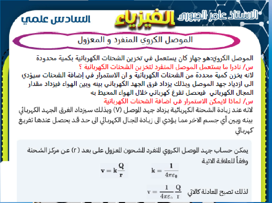 ملزمة الفيزياء للسادس الاعدادي الاستاذ عامر الجبوري